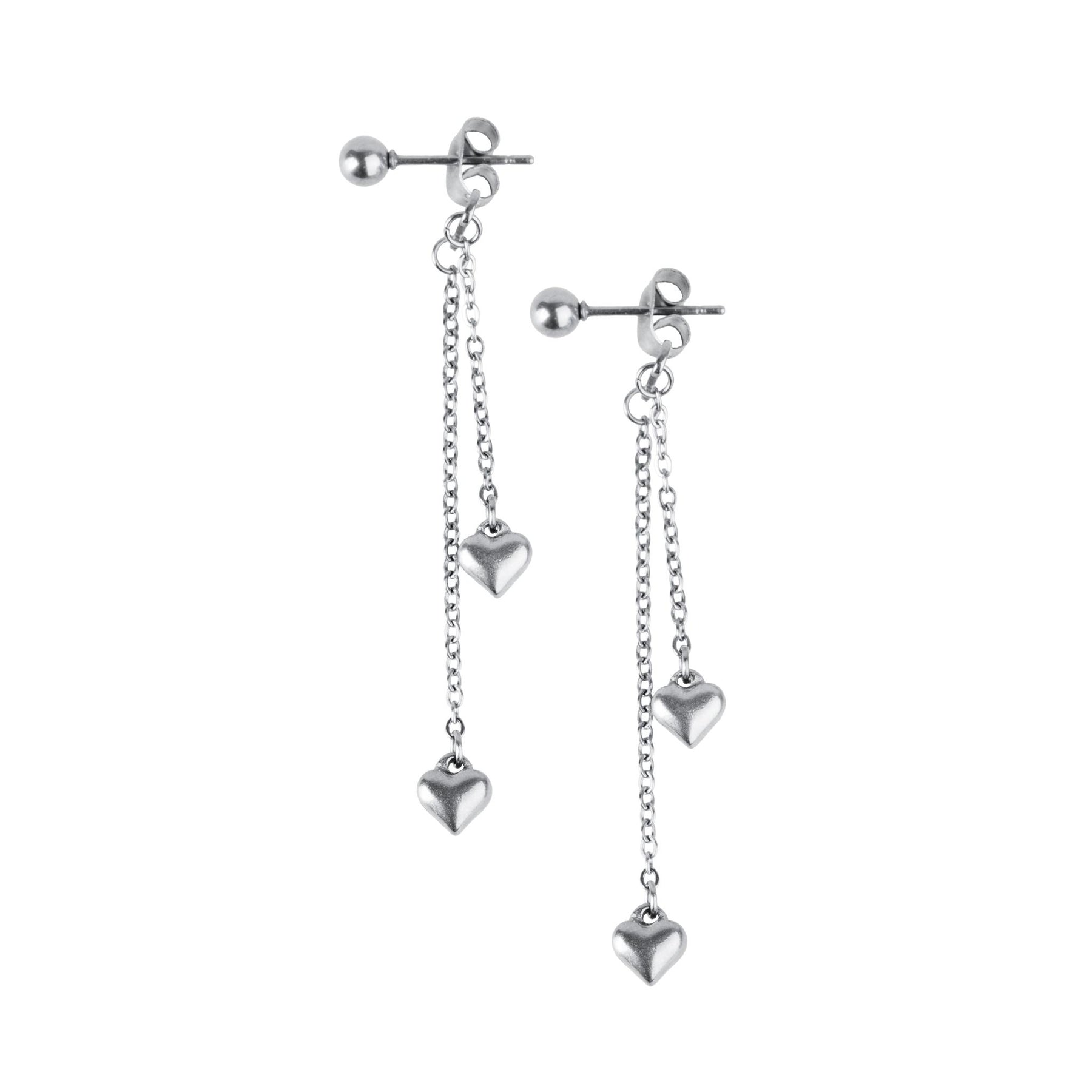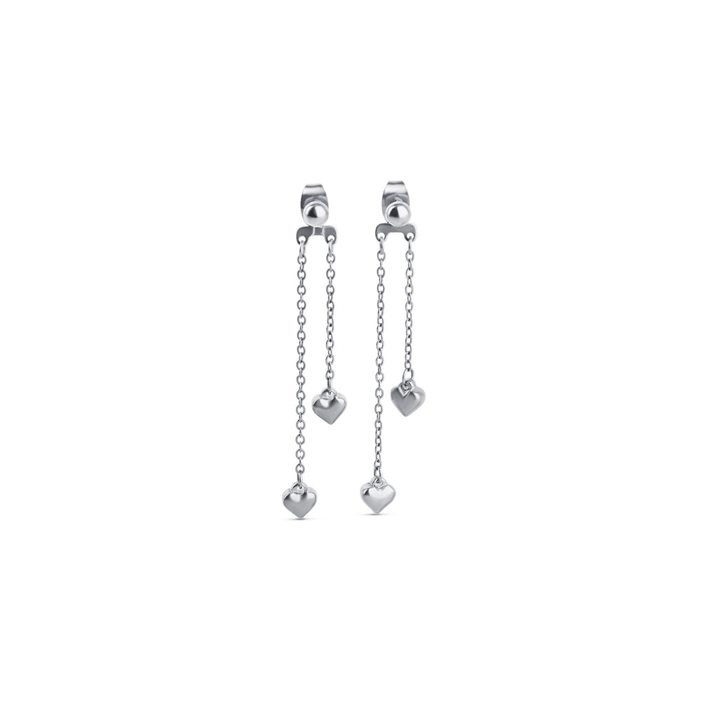 Sweet and romantic with this heart chain earring design. These charming stainless steel studs feature delicate heart details on a chain, are water-resistant, and tarnish-free for a loving touch. Available in silver & gold to fit your style and needs.