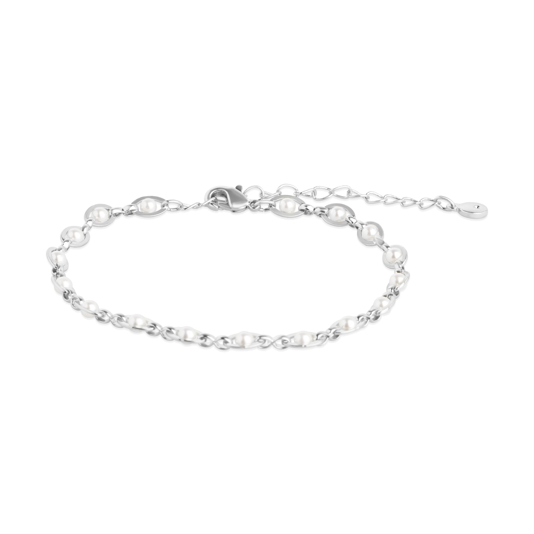 Een armband met pareldetails, vervaardigd uit waterproof roestvrij staal.