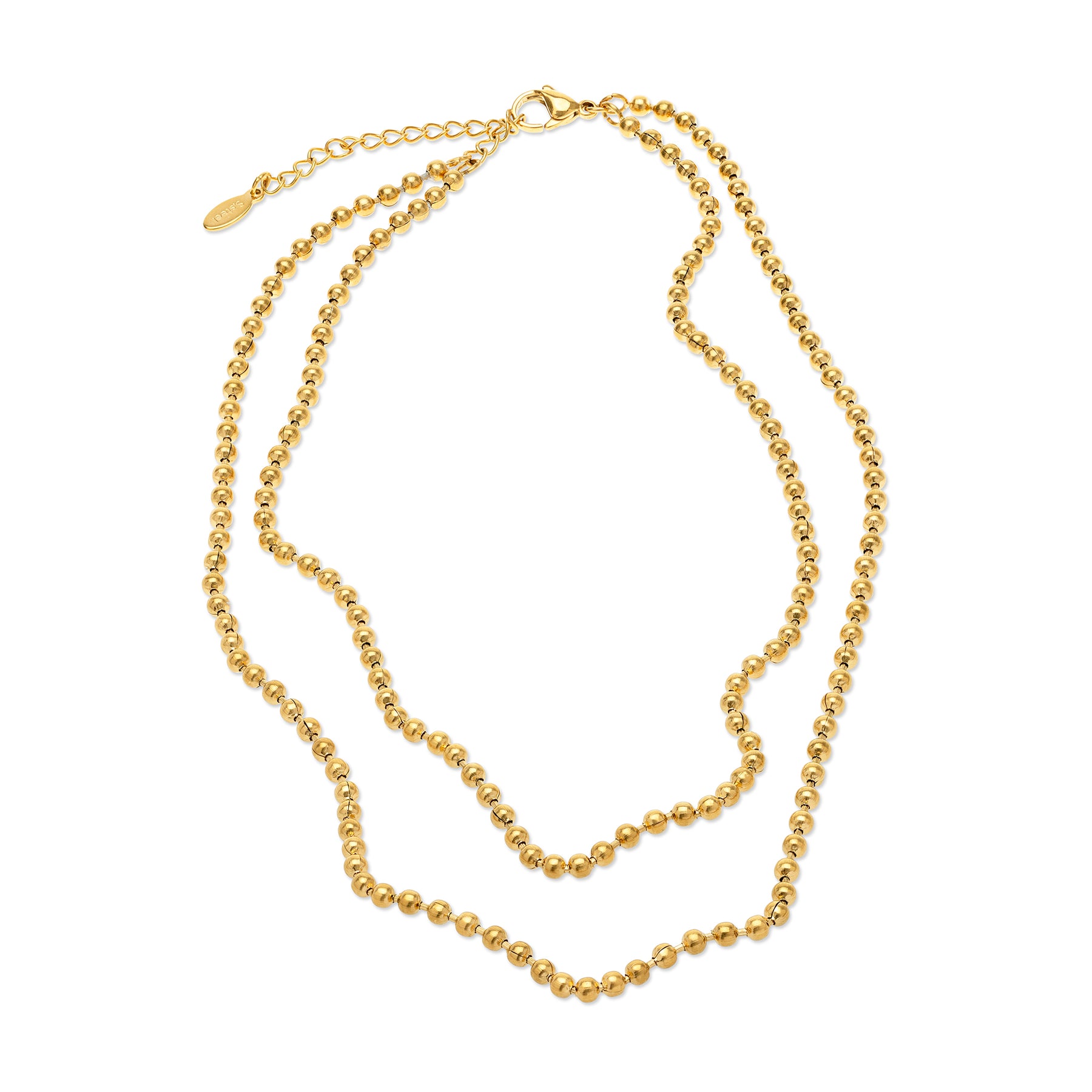 Modern ontwerp met deze duo bolletjesketting. Deze delicate roestvrijstalen ketting heeft twee slanke bolletjeskettingen in verschillende lengtes. Het is waterbestendig en verkleurt niet voor een ingetogen stijl.